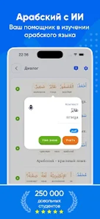 Dessutom innehåller Арабист funktioner för att öva med artificiell intelligens, vilket ger möjligheter till levande kommunikation och dialoger för att förbättra språkkunskaperna. Appen inkluderar även en grammatikhjälp där användare kan ställa frågor och få förklaringar. Detta gör Арабист till ett utmärkt verktyg för alla som vill bemästra arabiska, oavsett om det är för akademiska studier eller för att förstå kulturella och religiösa texter.